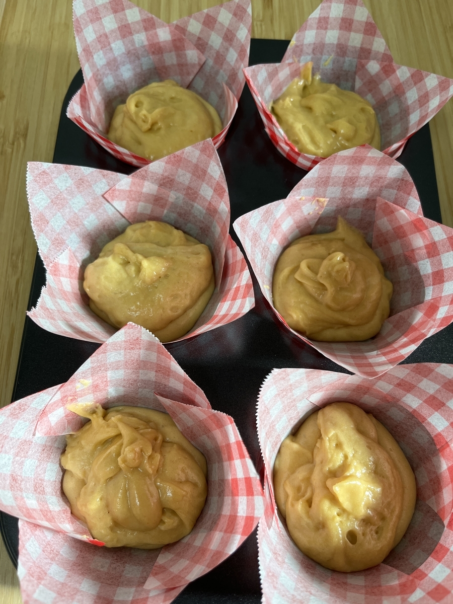 6、マフィン型に流し込み、予熱180度のオーブンで20分程度焼き完成
